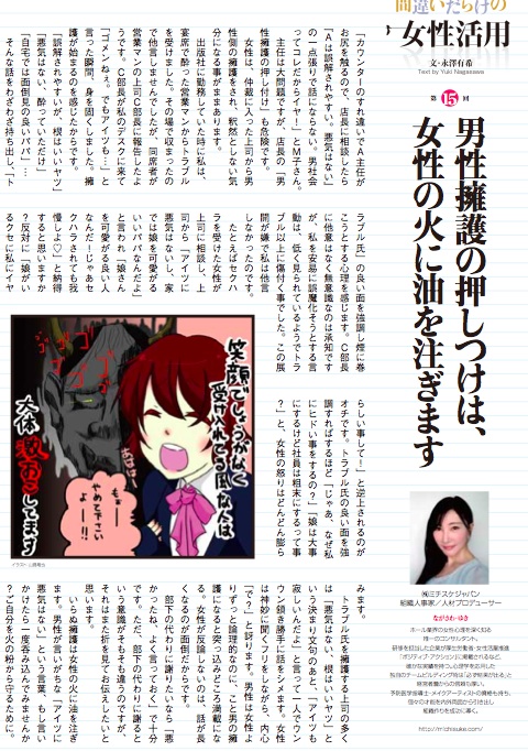 月刊グリーンべると「男性擁護の押しつけは、女性の火に油を注ぎます」